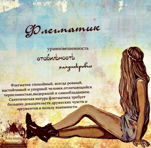 Phlegmatic people are calm and balanced, they are not subject to sudden outbursts of anger and are used to thinking and weighing things up well. Phlegmatic never make any important decision under the power of feelings or rashly. Logic and reasonable approach is their strong point.