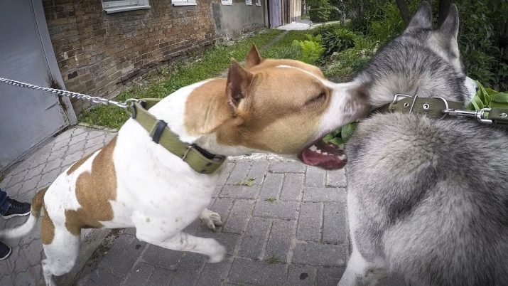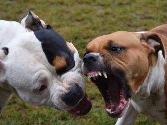 Usually a well-trained pit bull terrier behaves calmly when confronted with other animals on the street. He does not bully them and does not react to their barking. True, the pit bull may strain a little inside. Outwardly, it will demonstrate complete calm. Usually, uncontrolled aggression of these dogs is demonstrated by them only in those moments when they are in the ring.
