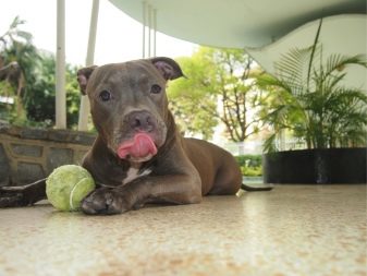 Despite the harsh appearance and fighting qualities, American pit bull terriers are big fans of playing. They especially like exciting sports games involving impressive physical activity. Pit bulls will be happy to play at home and in nature. With great pleasure, they are ready to run after the stick, bring a ball, and even heavy automobile tires. Without games and physical loads, these pets cannot be left, otherwise their unspent energy may result in bad behavior that the owners definitely won't like.