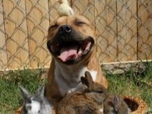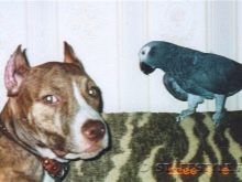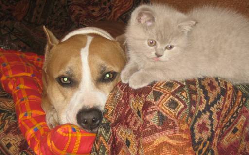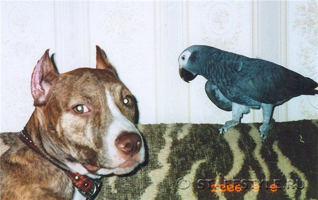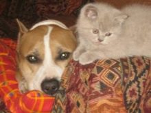 American stafford loyal to other pets, especially if they grew up together. Many breeders point out that These pets are very kind to little kittens (just females) - they feel in them their puppies, which are constantly looked after and looked after. If another pet constantly violates the personal boundaries of the staff or teases him (for example, a parrot), then these actions will not go unpunished.
