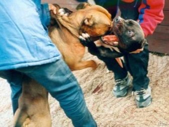 If Amstaff feels threatened against himself or his family members, he rushes to the attack without the slightest warning. These dogs will not bark or growl warningly, grinning, they will simply rush at the offender and in a fit of anger can easily bite through the arteries on the hands and neck of a person. If these qualities of a dog are useful on the street, then within the walls of an apartment they can bring many problems. This problem is particularly acute. in families with kidswhere a game that went abroad with an animal instantly turns into a brawl and can result in serious injuries.