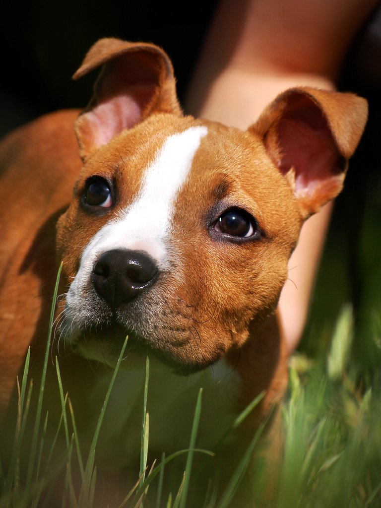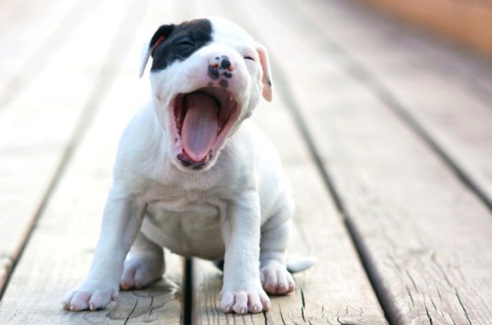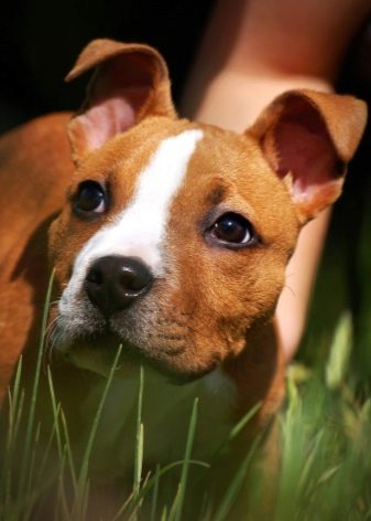 Eyes should be clear and not clouded, without tear paths and mucous lumps in the corners of the eyes. At about a month of age, staffs should weigh between 3 and 5 kg. A puppy should not look exhausted, or, conversely, overfed. Protruding ribs and bones of the pelvis speak of malnutrition.