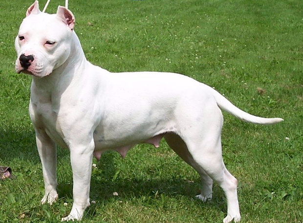 The nose is large and wide, nostrils are remarkably developed (this fighting breed of dogs, individuals of which must constantly have access to oxygen to fight). The ear itself is always dark (dark gray or black).