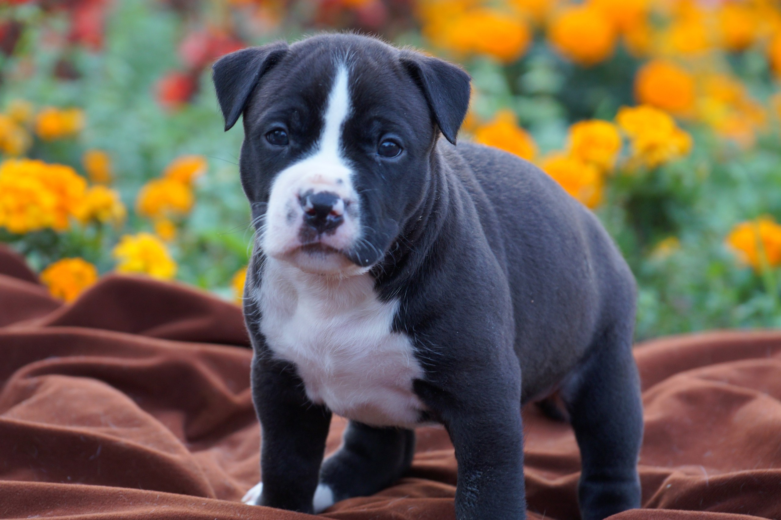 Consider that, depending on the age, the color of American Stafford may change significantly. For example, if newborn puppies in the color will have white spots, and the nose, eyelids or lips will also be pigmented with white, then by the year much of these spots may darken or become brown or red.
