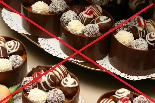 - Eliminate sweets (candy, chocolate), pastries, human food from the table (including salted, smoked, spicy and fatty foods). Sausages and sausages should also be abandoned.