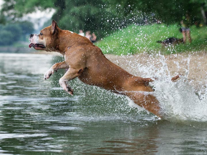 Amstaffs should be thoroughly cleaned no more than several times a year. They have short hair, which is not very dirty, except for this, these dogs are clean and do not like to walk in puddles or wallow in the water. To wash the wool is to choose Only hypoallergenic soft formula shampoos.