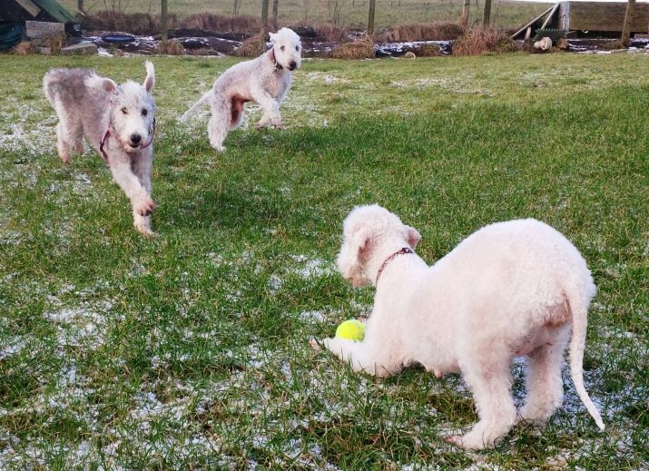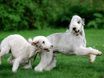 These dogs love to spend time in nature, which is again due to the hunting instinct. Active games, swimming, digging holes, running after rodents and birds - favorite activities of bedlington.