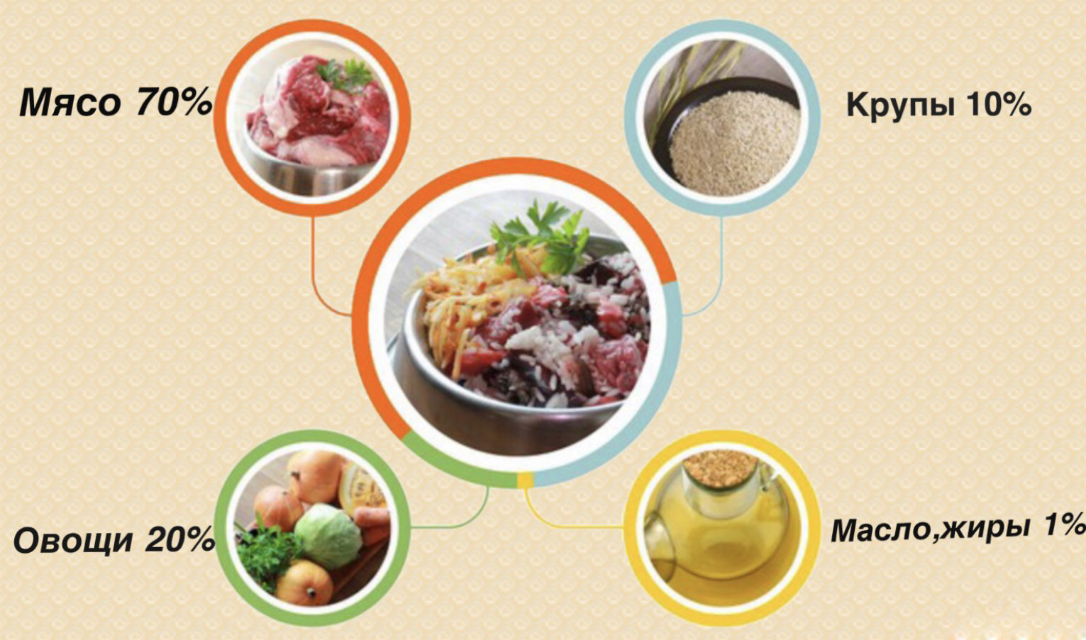 Adherents of feeding dogs with natural food should know the optimal ratio - 30/70. 7/10 daily servings should fall on the proteins presented: