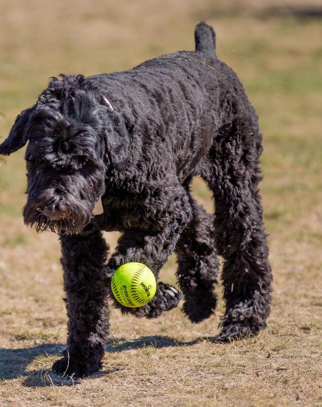 Rounded paws end in dark-colored claws. Of the colors for the Russian black terrier, only black is suitable, with insignificant patches of gray. The right dog is able to run long distances and jump far. Typical manners of movement are canter and lynx. The joints at the RChT are flexible, they bend without the slightest difficulty.
