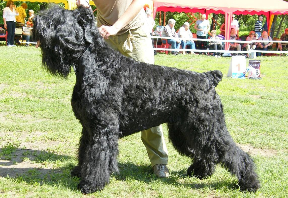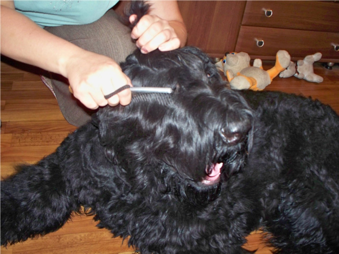 Russian black terriers are still significantly different in hairline parameters. The best are those that are dominated by a rough awn, and the undercoat is small. It is a little worse to work with dogs in which these parts of the coat are balanced. It is most difficult to care for pets covered with a predominantly soft undercoat that dominates the bristle hair. In the first case, the care is very easy - you just need to shave the guard hairs on the body and on the hips every year.