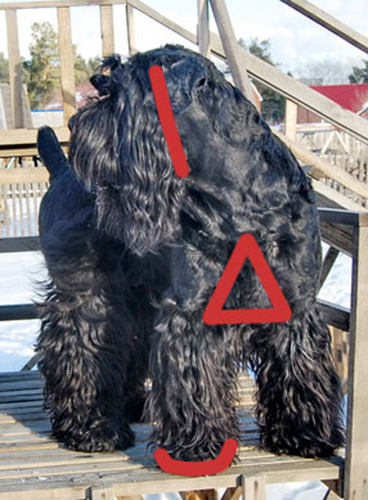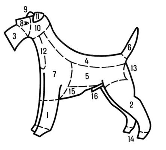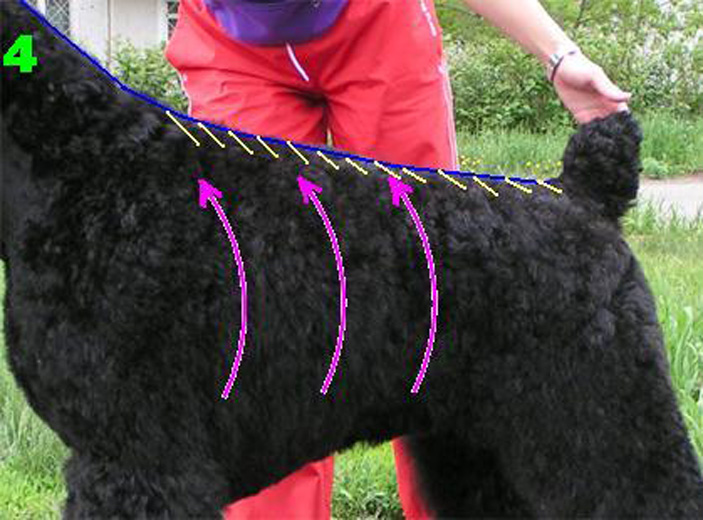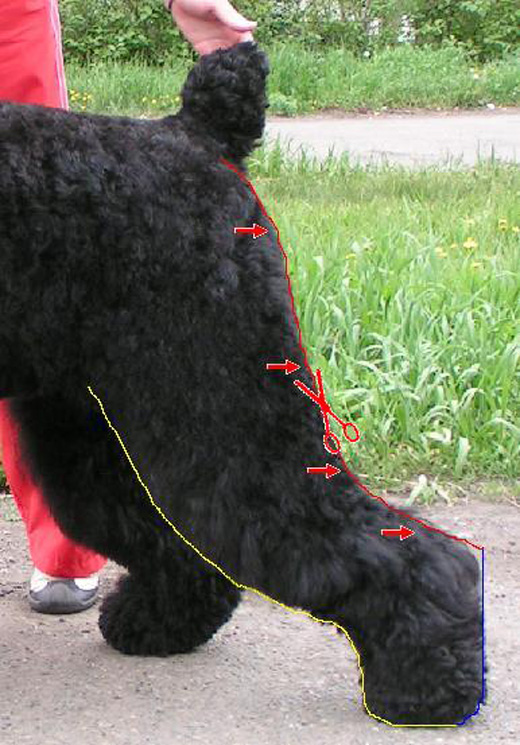 Shaving the hair on the inside of the neck is easy. But regardless of the cutting scheme chosen, any of its lines should be smooth. Hair is left on the body with a length of 3-7 cm. Exact numbers are determined for each dog individually. Required to show: