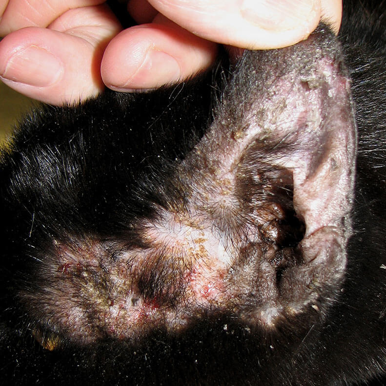 - elongated hair on the hind legs.