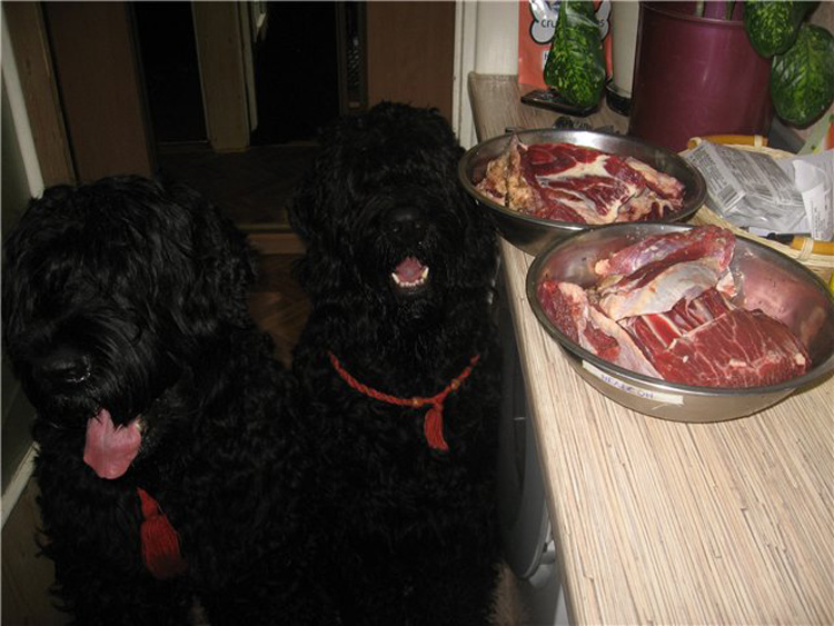 Despite the fact that RFTs belong to the same species as wolves, it is undesirable to feed them with one meat. A diet of this kind is simply unsuitable for animals. The common opinion about the need to increase the nutritious nutrition of cereals is wrong. Any carbohydrates for four-legged “empty” and over-modest daily allowances simply cease to digest. But in the choice between factory feed and natural products, the owners are not limited in any way.