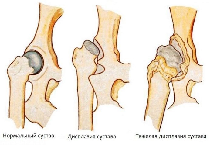 dysplasia of the hip and elbow joints;