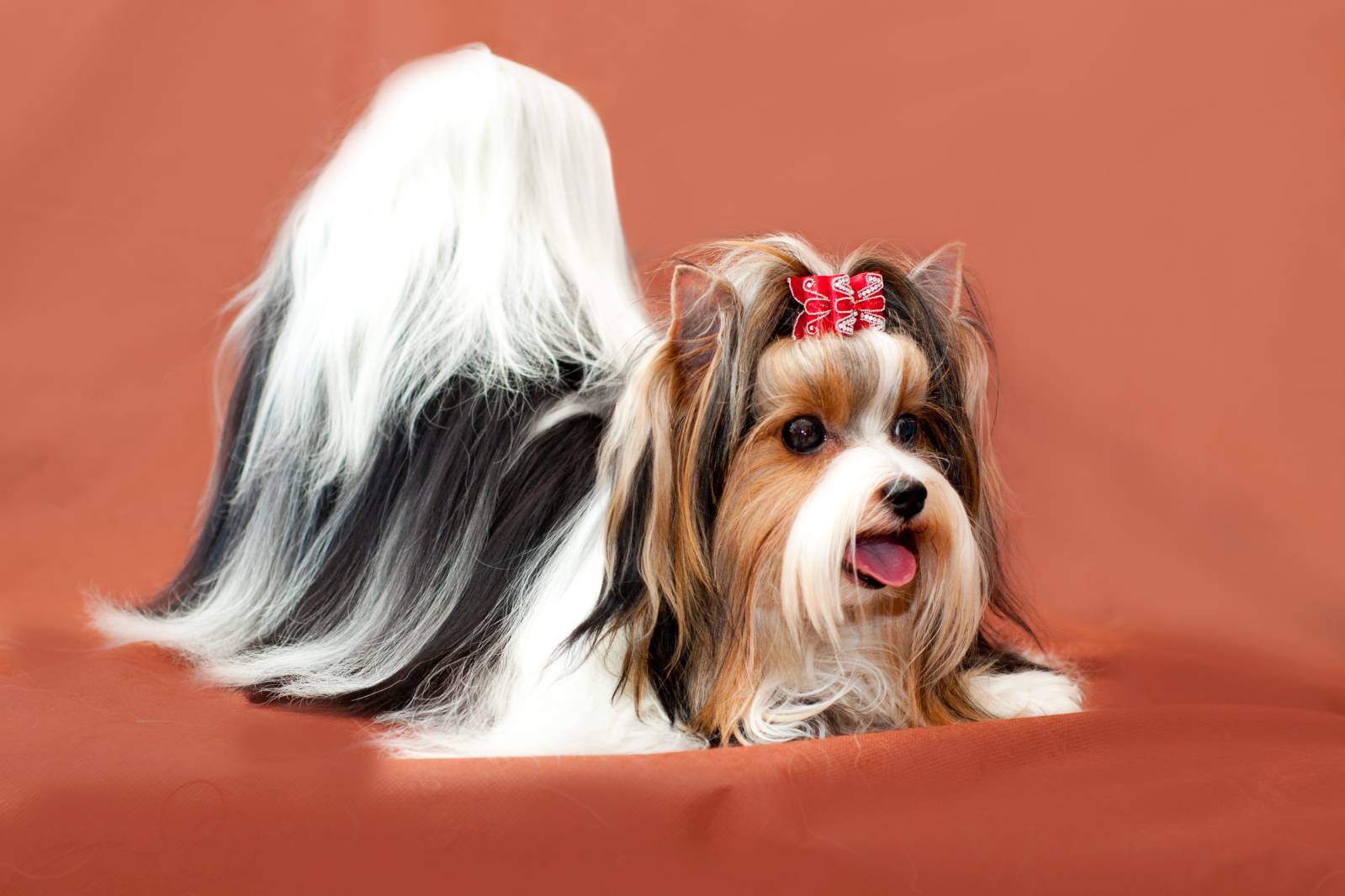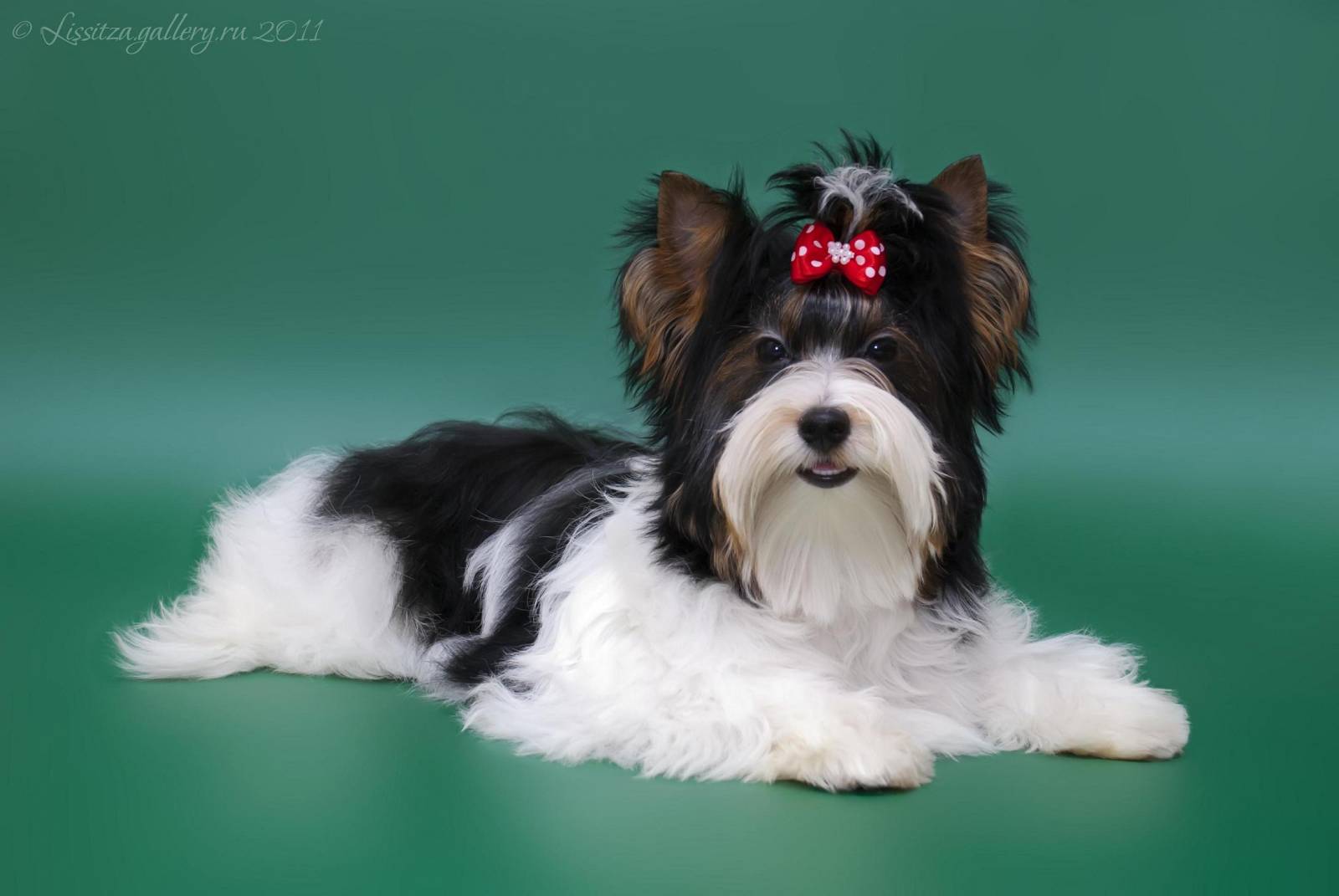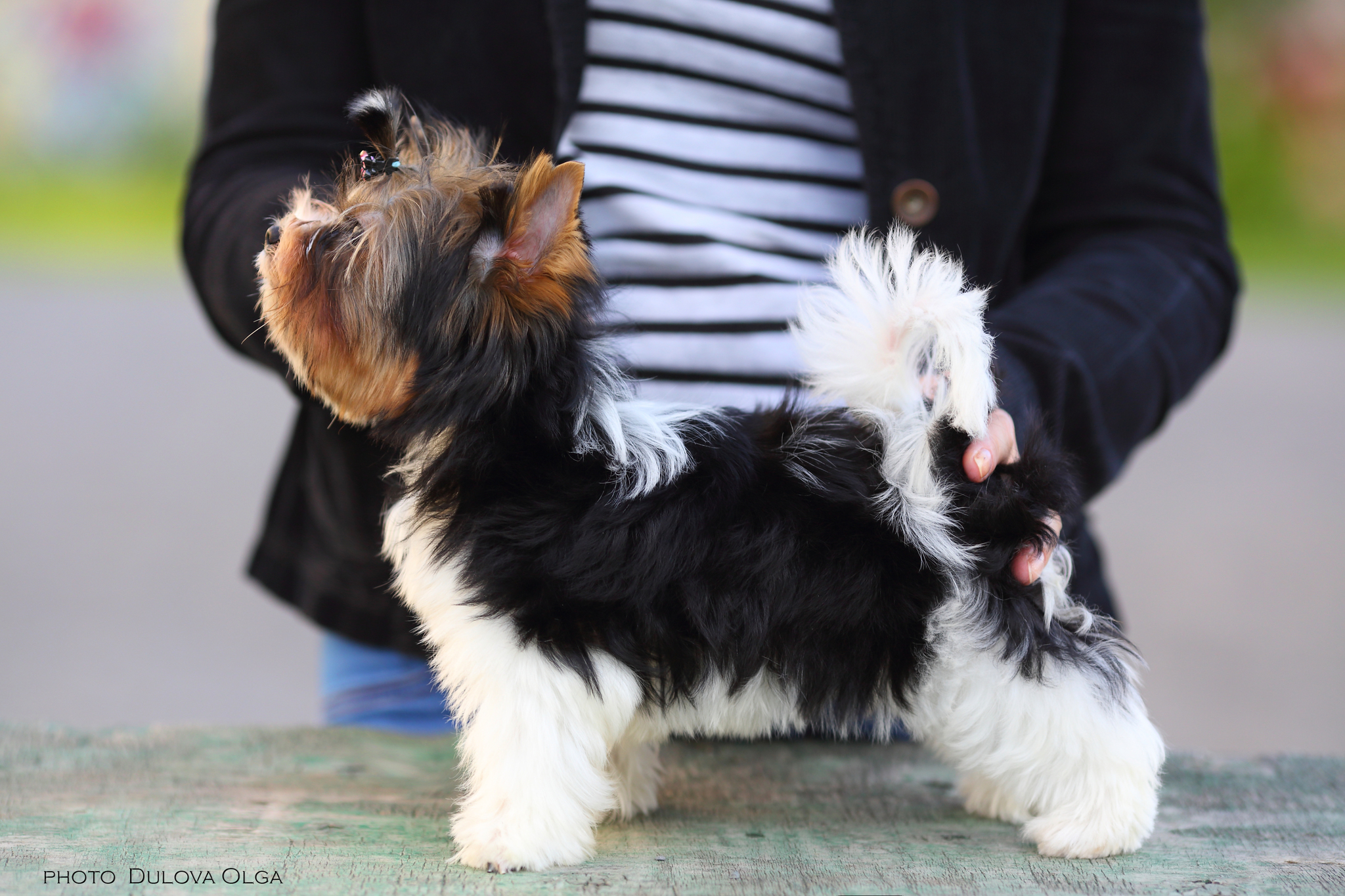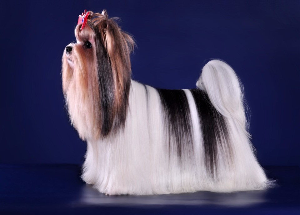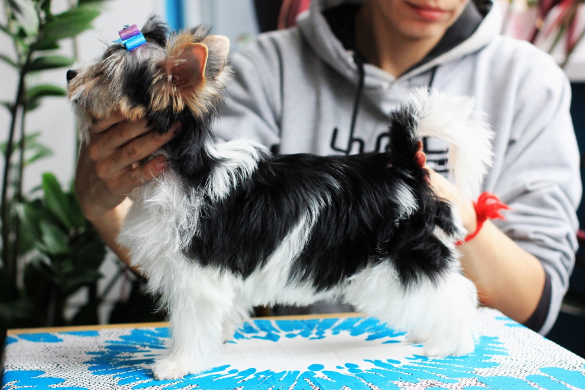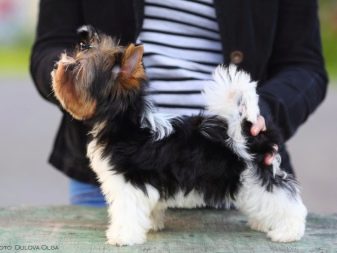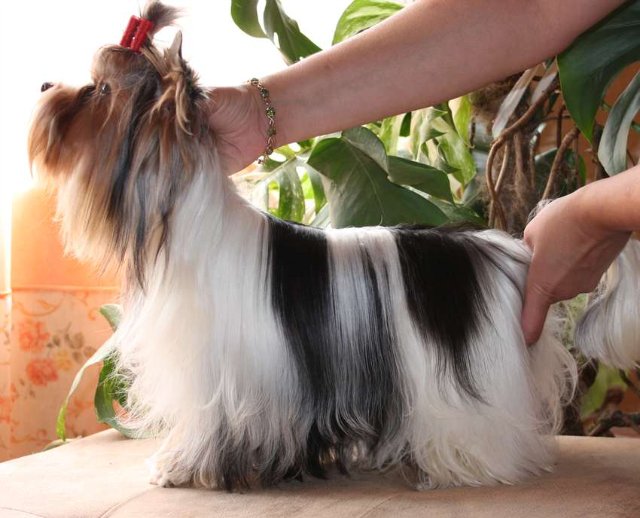 The difference of the breed was not only in white spots. It was attended by genes that were not present in York. This meant that other species of dogs, not related to terriers, participated in the creation of this breed. Black-and-white Yorkies hit Russia in 2008.