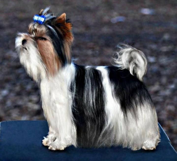 In 1984, German breeders by the name of Beaver in the Yorkshire litter turned out to have puppies with an unusual color for this type. There was a mutation responsible for the white color and the kids showed white spots. The owners showed an unusual pigment, they decided to consolidate it in subsequent generations. After four years of persistent selection work, in 1988, a new breed was presented in the show-ring in Wiesbaden as a black and white york. A year later, the breed was registered in the German club A. S. N. N. - L. e. V. and created the first standard. The standard was finally signed in 2007.