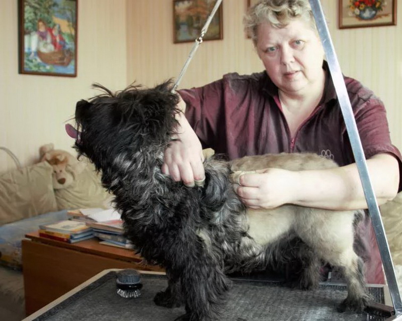 - First of all, you should carefully comb a terrier with a special brush and then a comb. Trimming should start with the ears. They should be clearly visible. The outer side as a result should be similar in sensation to velvet. On the inner side, hairs do not remove everything.