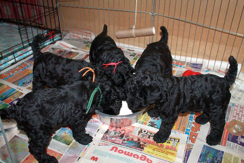 Up to 3 months, Kerry Blue Terrier puppies hardly get used to a particular place to use the toilet. Until the free-range is started, it is worthwhile to put in the house several trays with absorbing diapers. It’s not necessary to scold a kid for blunders, but it is definitely worth praising for a properly performed ritual.
