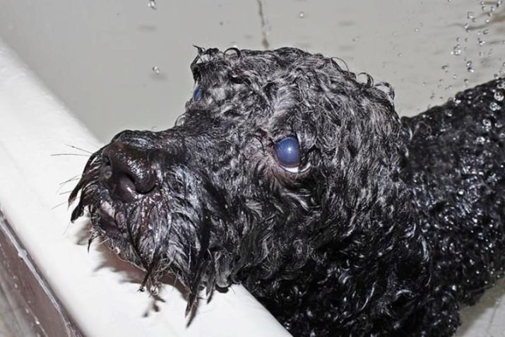 Kerry Blue Terriers must be used to manipulation from an early age. for body care, eyes, ears. An adult dog will be subjected to regular grooming, and patience is better brought up in a pet in advance. It is necessary to get a special table at home and carry out on it daily eye and ear examinations, comb a puppy. Often, wash and baby, and adult dogs do not need. For bathing selected special tools that preserve the natural protective substances on their skin and wool.