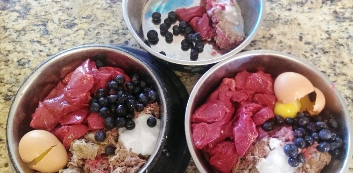 It is recommended to add to the natural diet vitamins and mineral complexes recommended by a veterinarian observing a dog.
