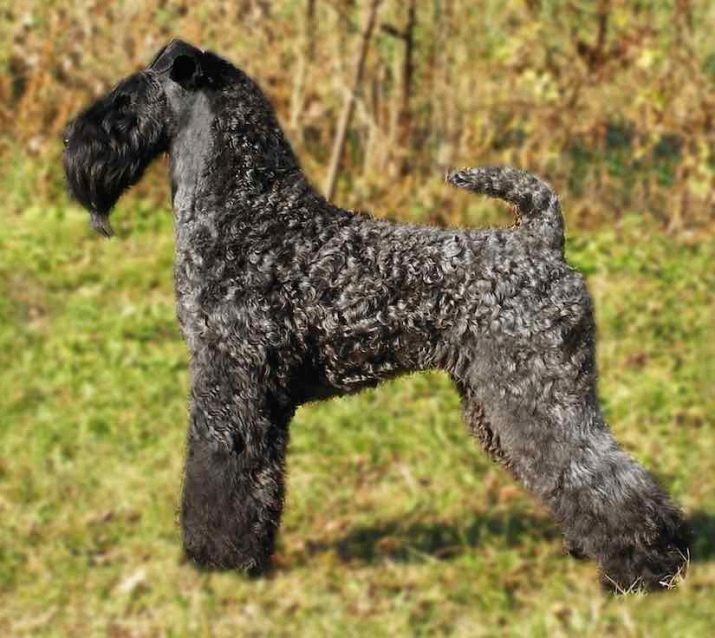 The description of the breed characteristic of the Kerry Blue Terrier emphasizes the uniqueness of its phenotype and addition. Back in 1928, it was this dog that was honored with the title “almost perfect”, and since then its appearance has not undergone any special changes. Interestingly, the blue color of wool in one of the three options it acquires only after 18 months - up to this time the shade of the awn can be dark gray, graphite and even black, brown spots are allowed.