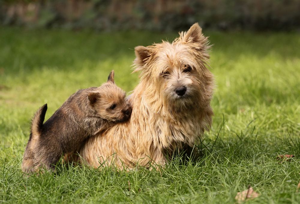 - Walking a Norwich is recommended in a company with burrowed terriers. These pets are used to nibbling each other's faces. Representatives of other breeds can make such gestures wrong.