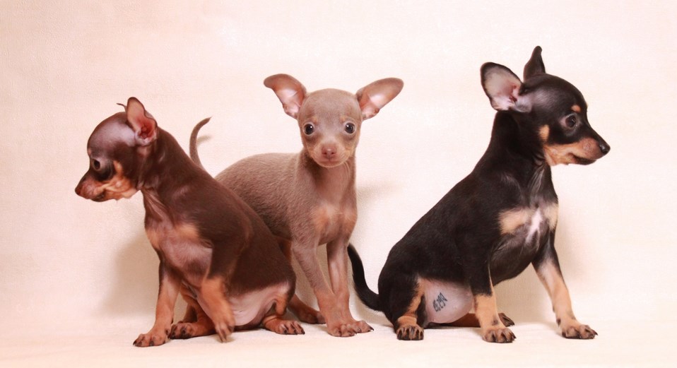 Smooth-haired Russian toy terrier originates from a pedigree in 18th century England. The toy terriers were extremely popular, brought them out of the English black terriers, crossed with the Manchester terrier. At first they were bred to fight rats, but the charming appearance of tiny dogs fascinated the aristocrats.
