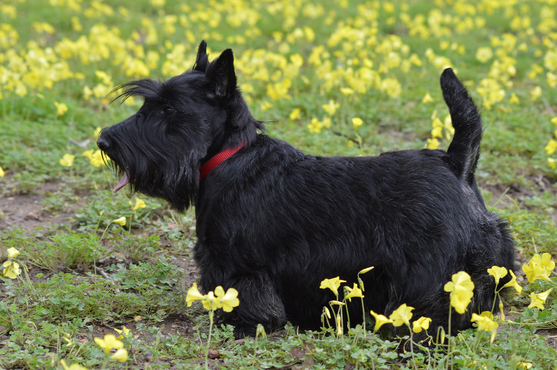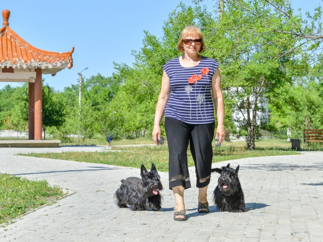 To cope with the hunter's instinct, because of which the dog will have to constantly run while walking, you need to immediately accustom him to the leash. Educated dog will deliver less hassle to its owner. Every owner should also know that the scotch terrier is an incredibly active dog and nothing can be done about it.
