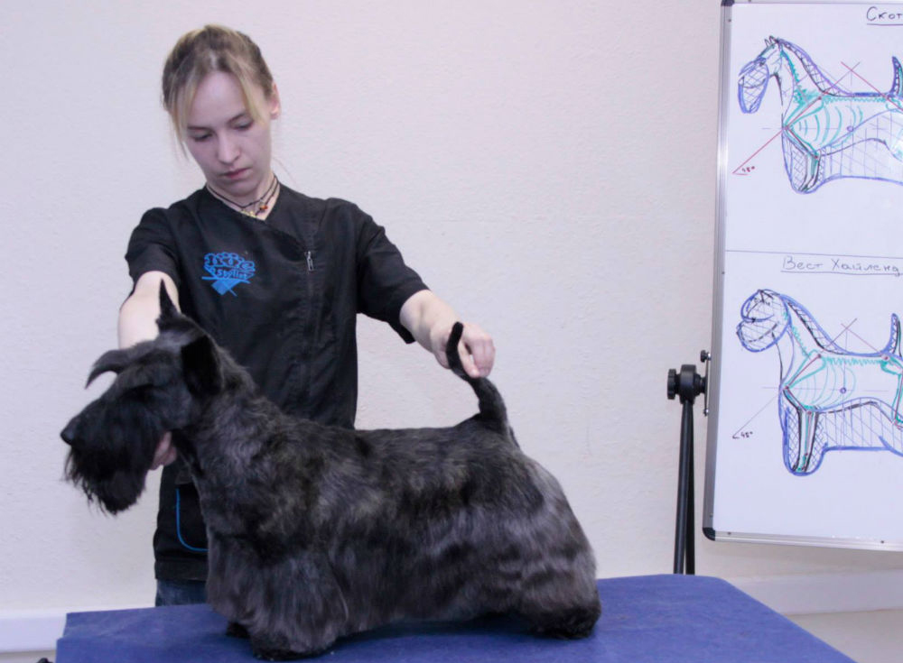 The coat of scotch terrier requires thatso that he is provided with a constant trimming and cutting. These are the only conditions that must be followed when keeping dogs. They do not need constant combing, so in order to mow your pet, you will need to find a good master (for exhibitions this is a must) or to master the skill with your own hands.