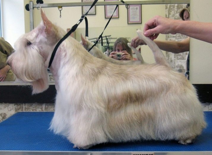 This is a homemade option for grooming a scotch terrier. For the exhibition there are many details that include the requirements for the thickness and length of the coat. Therefore, such dogs will need grooming, which will be carried out by a professional.