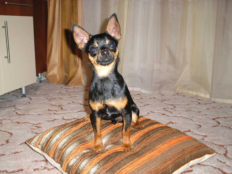 Pet breed Russian toy terrier has a pronounced sense of loyalty and loyalty to its owner. For this reason, it is hoped that the person will get a real friend. Also, the dog feels the mood of the owner and adapts to it.