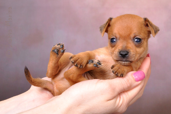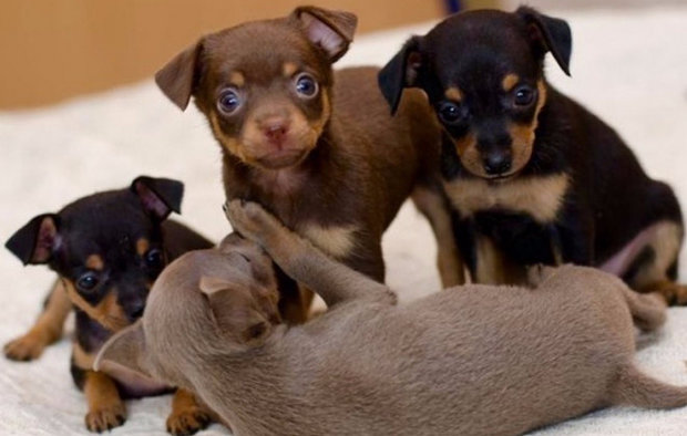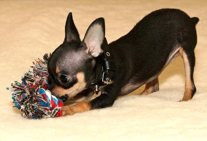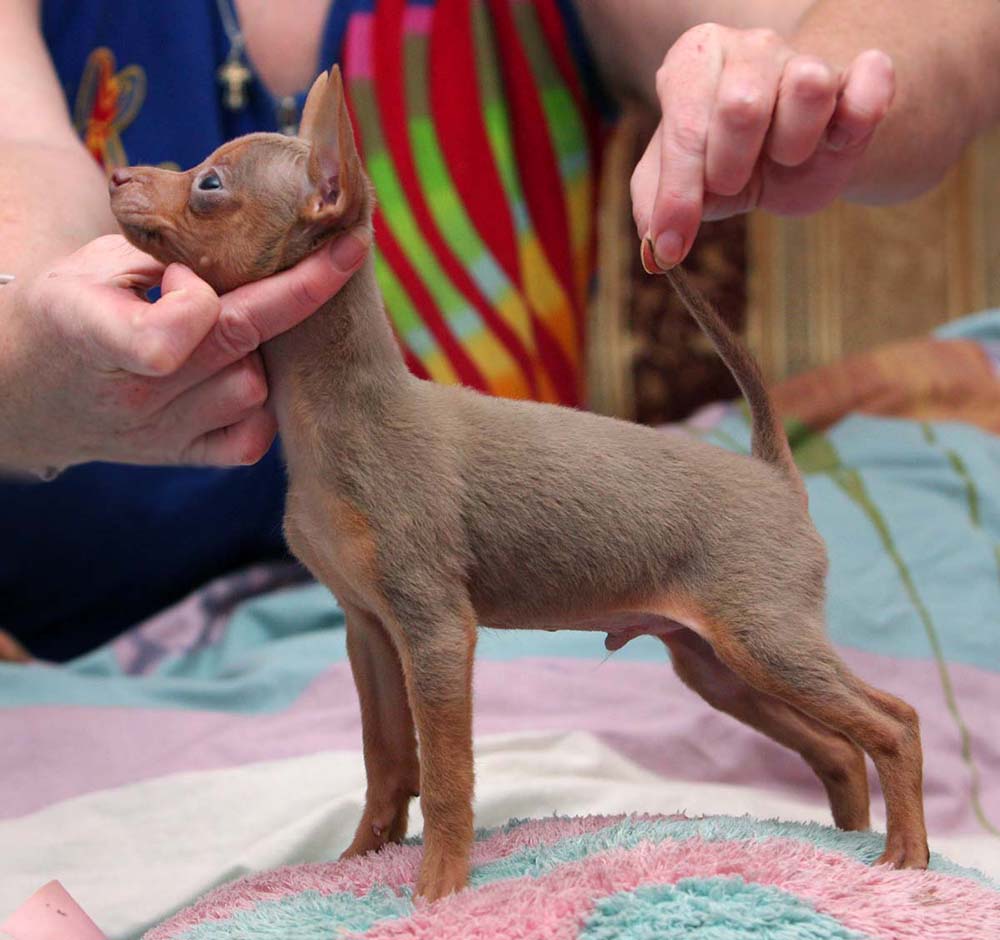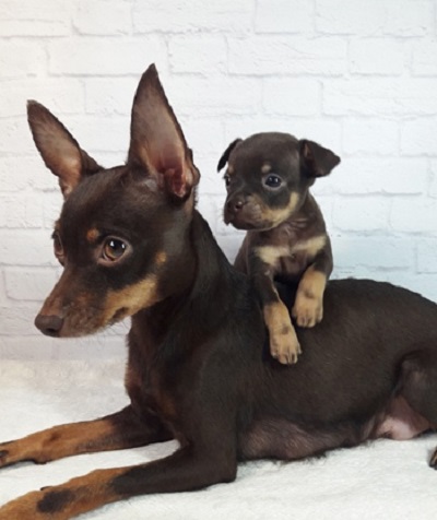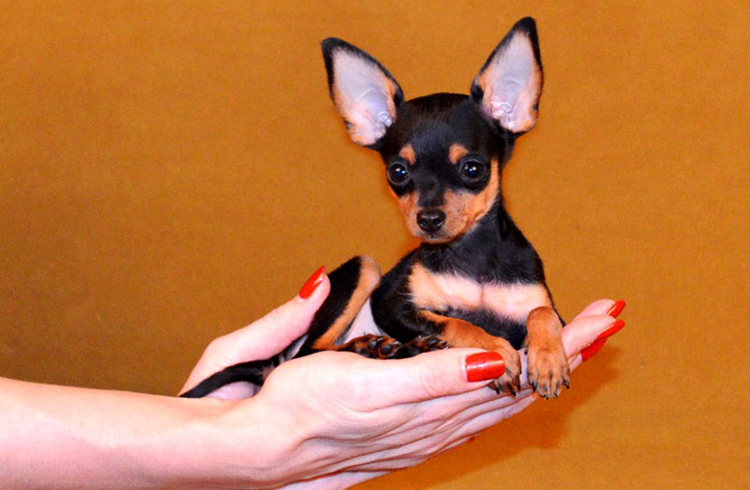 Russian toy terrier is the smallest terrier in the world.This breed is much more popular than miniature spitz and chihuahua. Such a pet is not only very decorative, but also a gentle animal. The height of the dog is no more than 26 cm. Weight usually ranges from 1.3 to 2.7 kg. Toy Terrier lives on average 10-15 years.