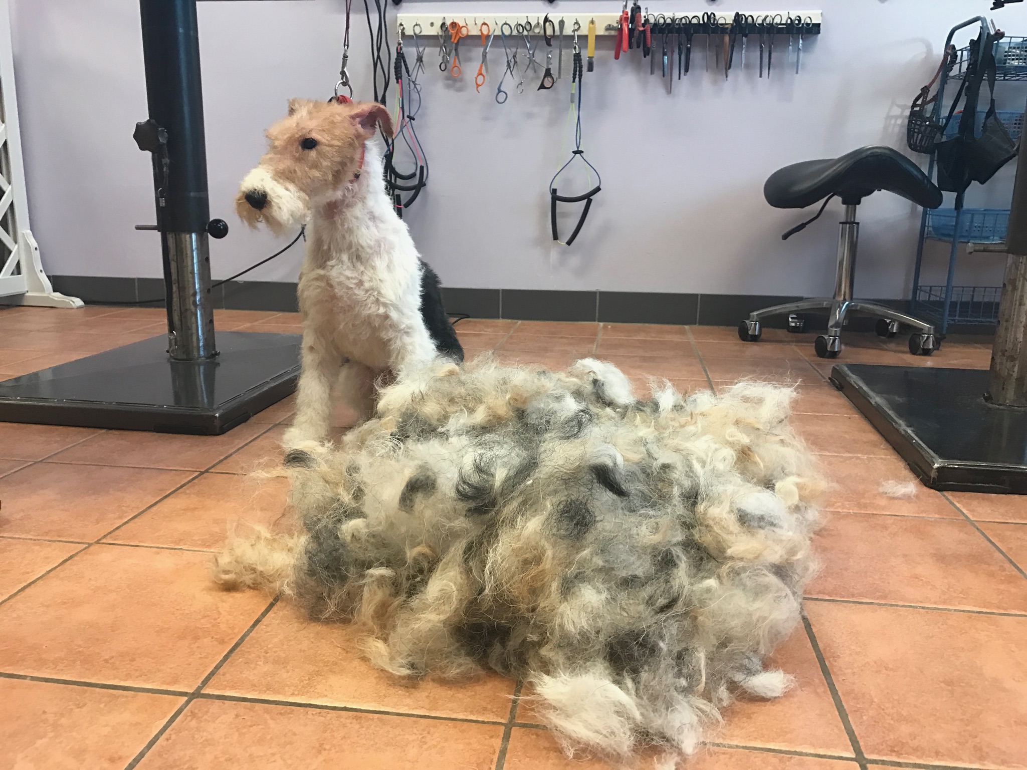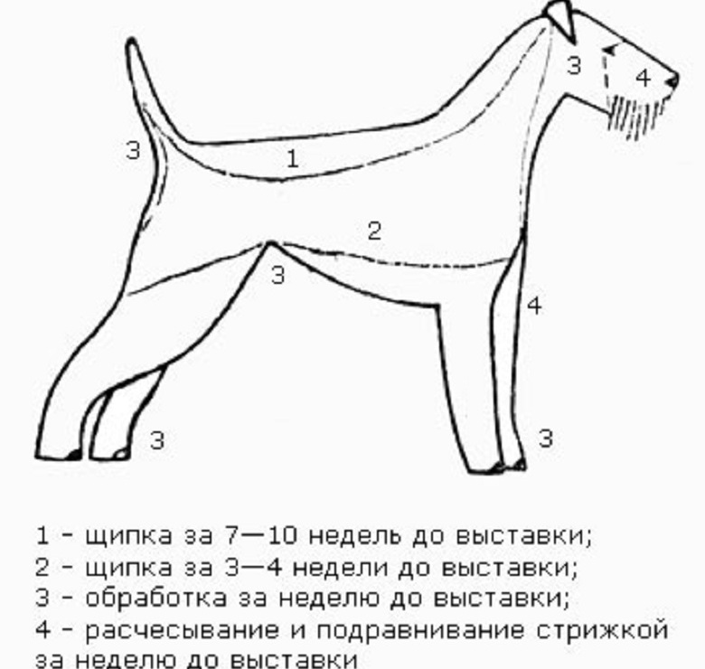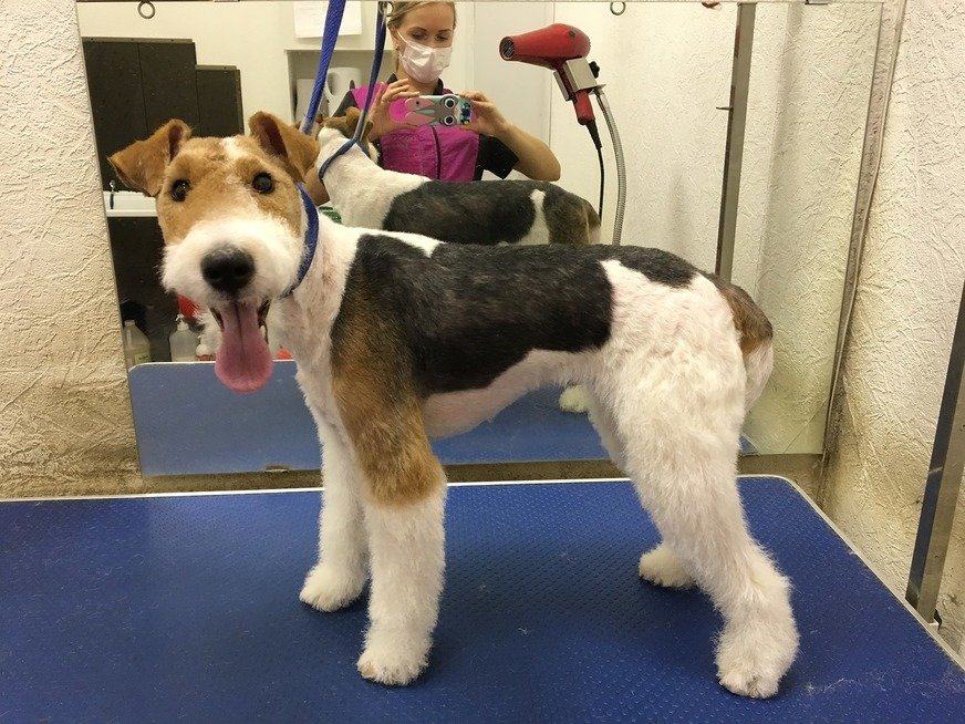 With respect to the wire-haired fox terriers, only trimming is relevant, the main areas of treatment are the neck, ears, cheeks, chest, back and sides.