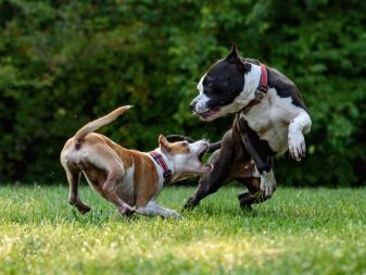 For many years, breeding work with the breed was carried out taking into account the participation of the animal in the battles. At the same time, dogs that had shown aggression against a person were necessarily sent to the marriage. Modern amstaffs are practically not used for fights, but even taking into account the combat past, they can expect no more danger from them than from a sheepdog or from another service dog.