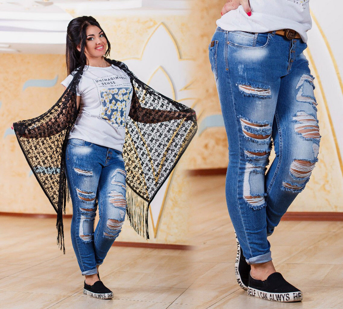 - Girls- "inch" You can also choose fashionable models, but you should remember one basic rule: you need to visually draw a figure, which means there should not be any horizontal lines in the cut. Straight and slim models are the perfect choice. Denim darker tones, as well as the effect of rubbing will be very useful. To visually enlarge the narrow hips, you can choose pants with scuffs on the hips.