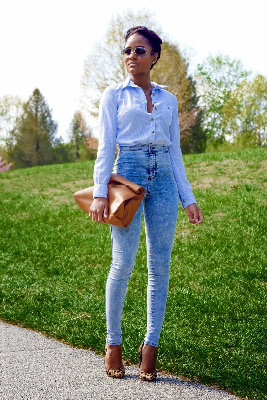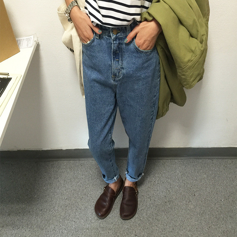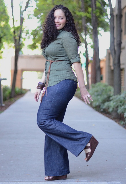 - "Triangle" It has wide hips, full legs, but at the same time a very narrow upper body. Such a violation of proportions can be compensated if you successfully choose women's denim trousers. The high-waisted version of the free cut will hide these flaws. The most important thing in this case is to avoid those options that can increase the amount of hips visually.