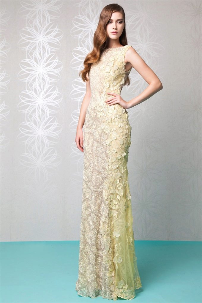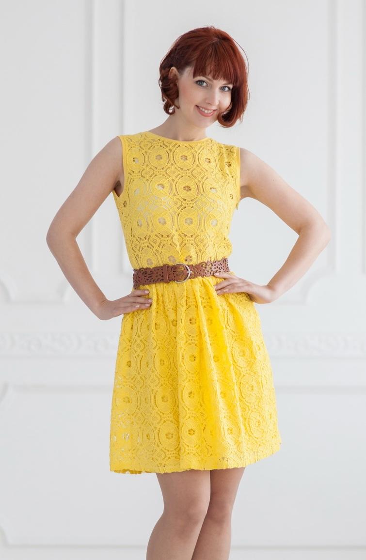Yellow lace fits both blondes and brunettes. From this dress breathes cheerfulness and optimism. Style year turns a woman into a real goldfish.