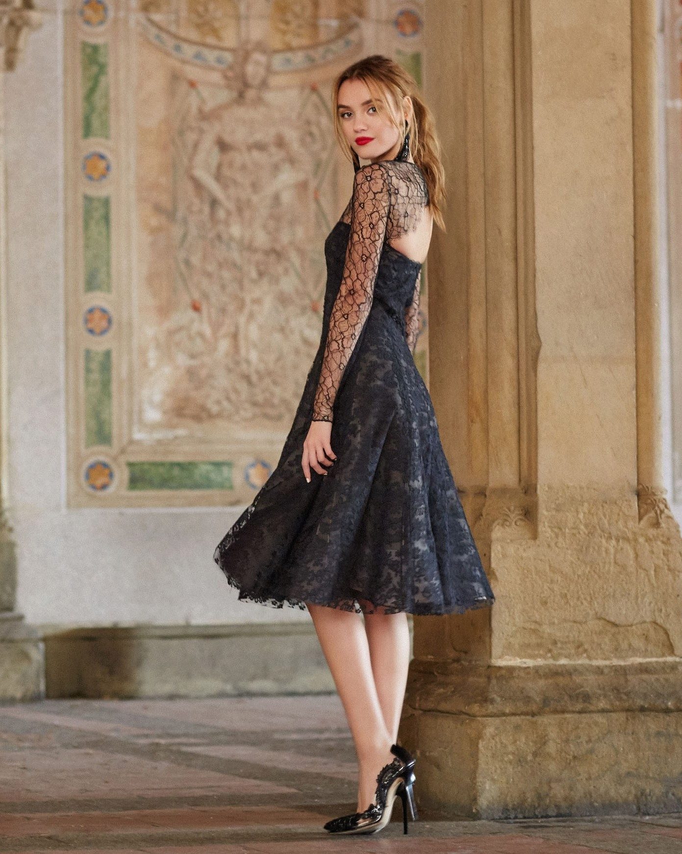 A length covering the knees or reaching the ankles makes the lace dress versatile. It looks equally good both in everyday life and at a solemn event.