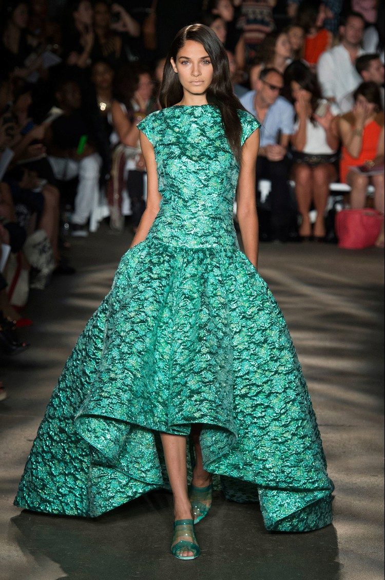 Dress to the floor demonstrates romanticism and royal luxury. The pomp of the skirt is formed by layering or due to the dense fabric that forms a rigid base.