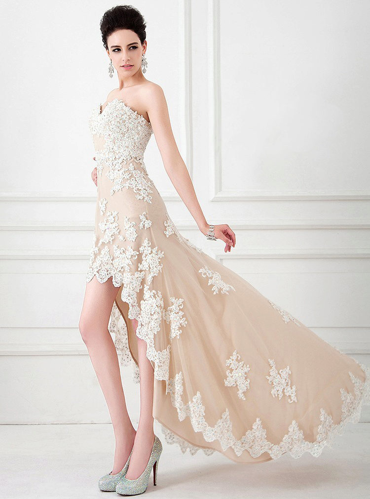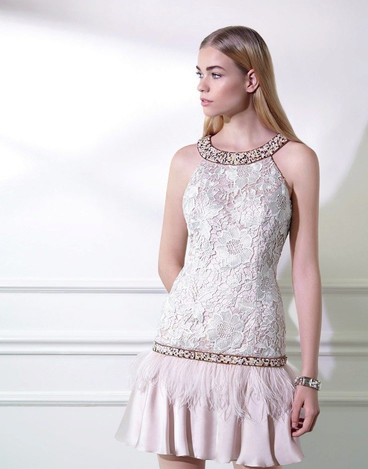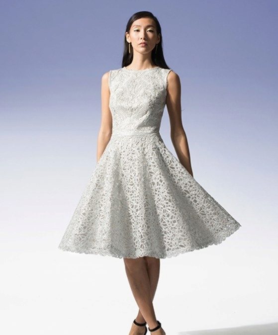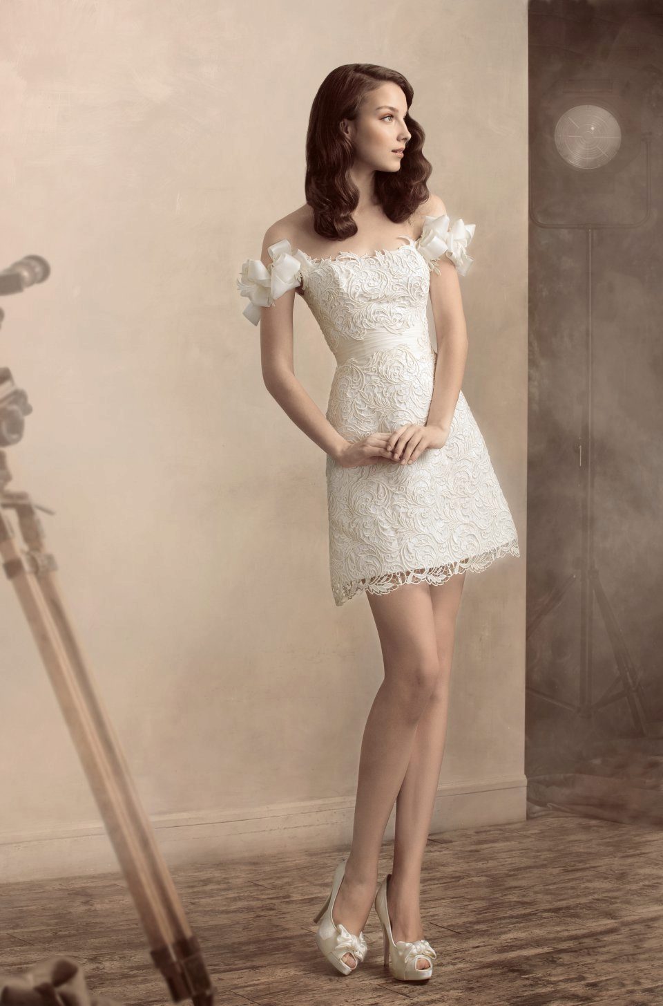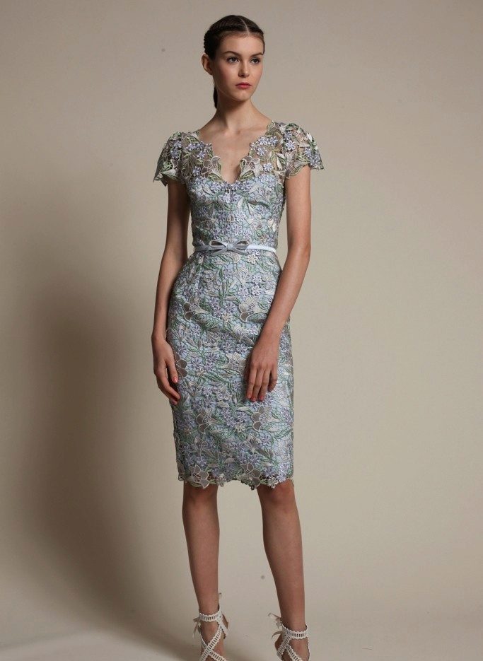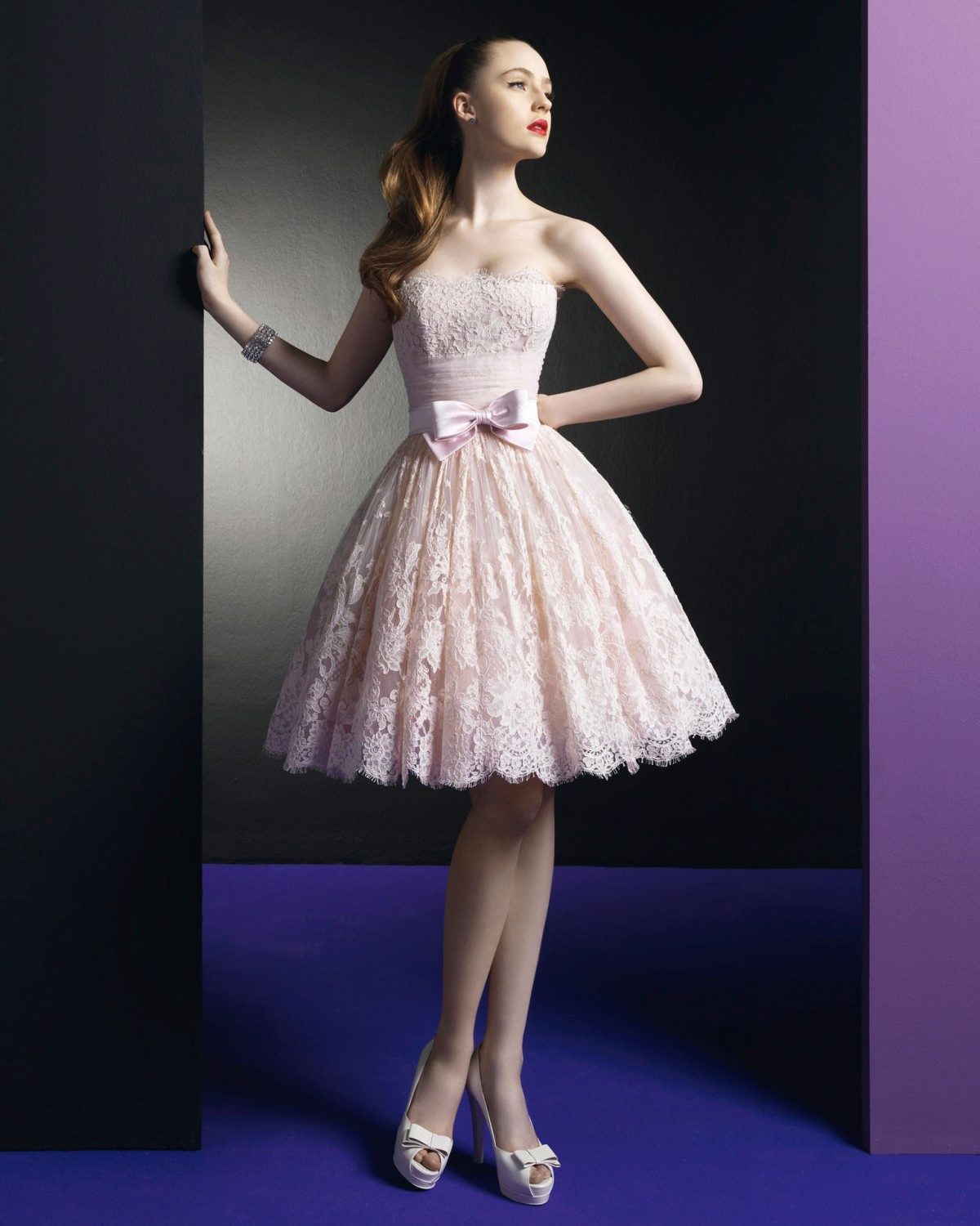 Novelty and romanticism are inherent in the shortened lace dress. Its graceful and light color is ideal for both office and evening bow.