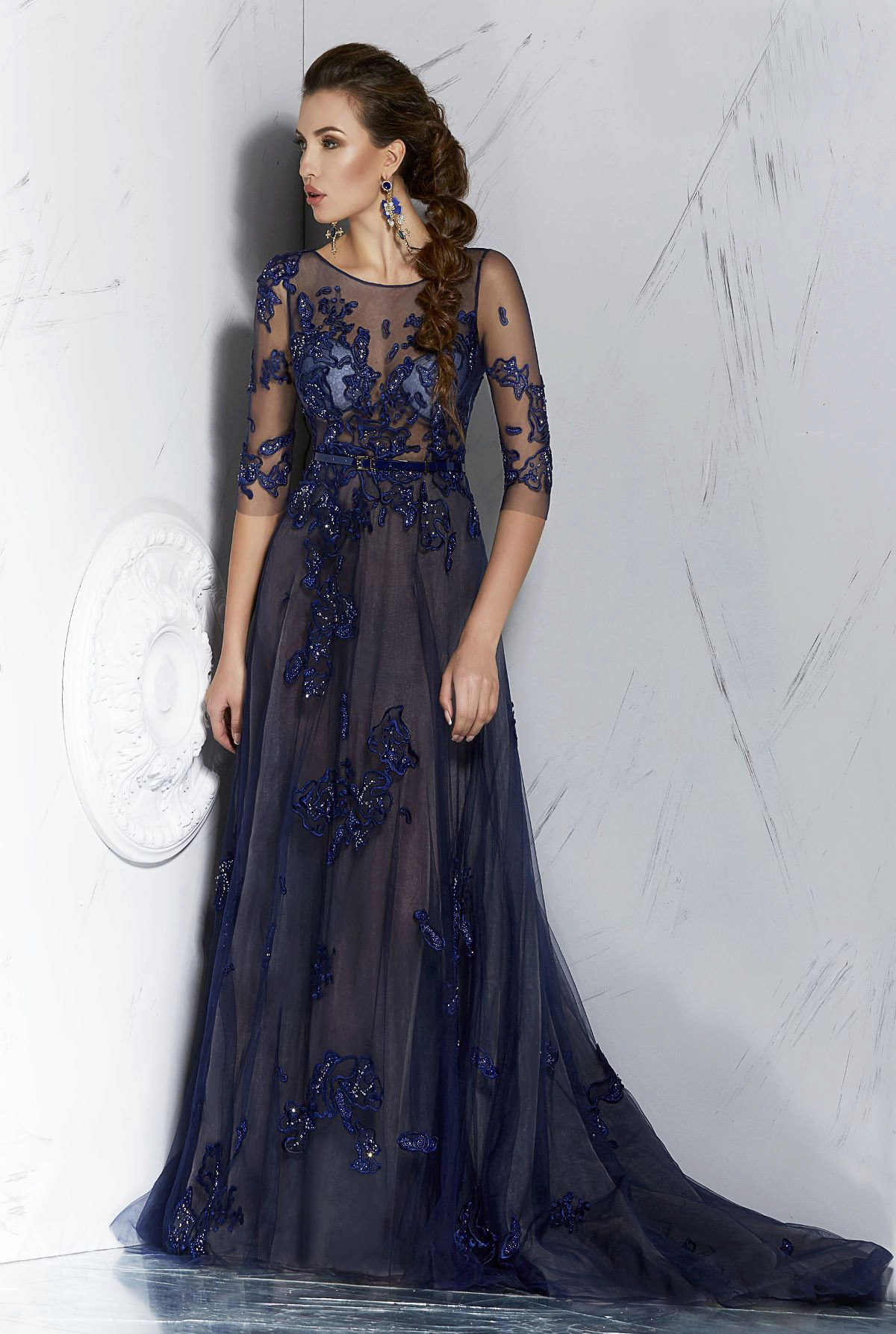 Gray color is considered by many to be boring and uninteresting. However, gray lace is another thing. Any woman will be gorgeous in a slinky dark gray lace dress, the lining of which is made of bright blue satin. A long lace sleeve adds sophistication to the look.