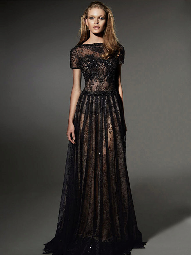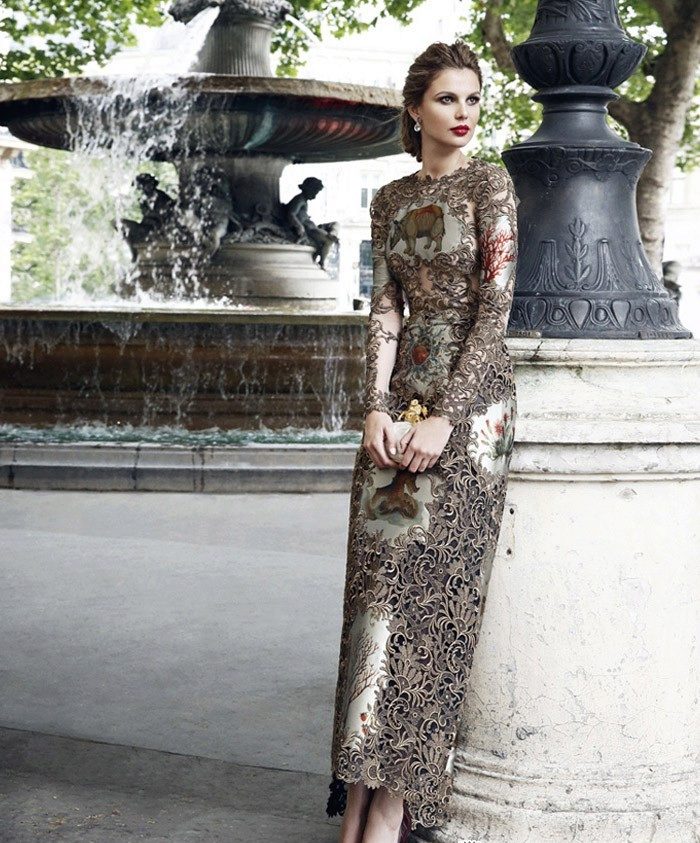 From the lace dress to the floor blows luxury and chic. It gives mystery and romance, emphasizes sexual attractiveness, while there is no aggression and vulgarity in it. Even if there is a deep neckline or open back, the length balances the image.