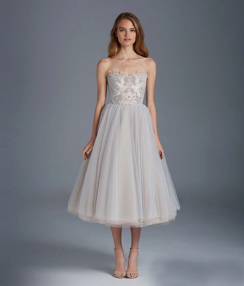 Incredibly light and airy in retro style, medium-length dresses are a boon for prom.