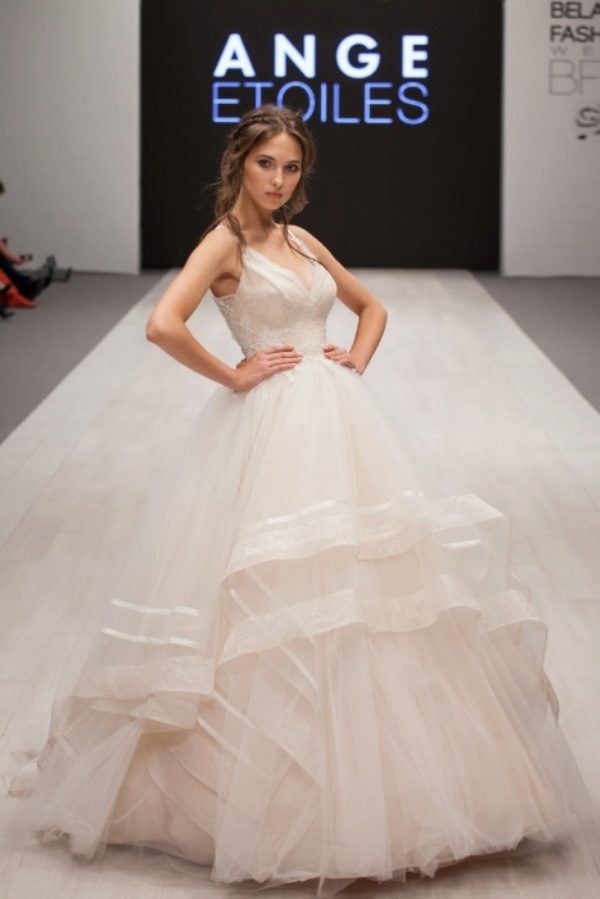On the bodice may be ornamental flowers created from tulle or ribbons. Thanks to this combination, you can balance the figure, give it harmony and bring it closer to the hourglass shape.