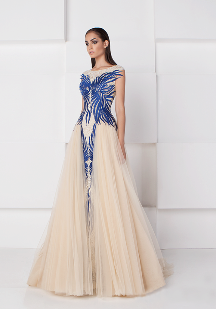 The blue color in combination with organza becomes even more fresh, clean and light. At the same time in the dress rather small inserts from organza.