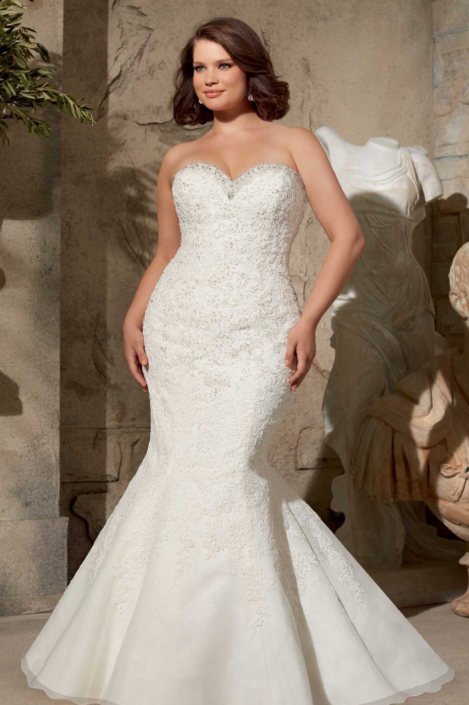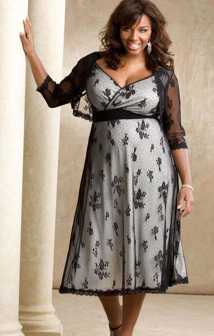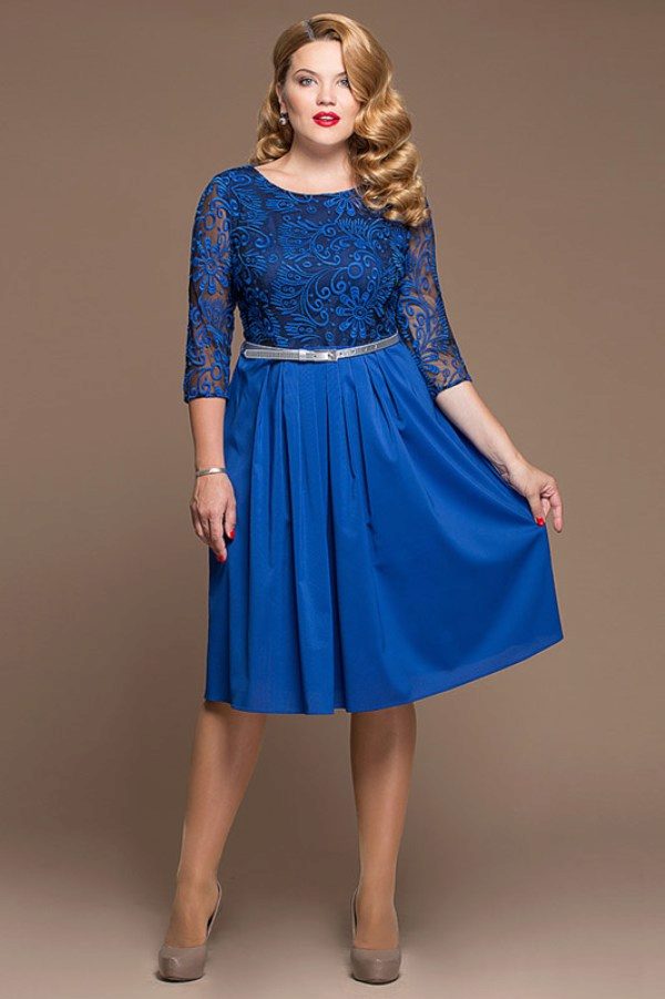 The correct style, good color and suitable length are three secrets that will help a full woman to look like in a guipure dress no worse than any model.