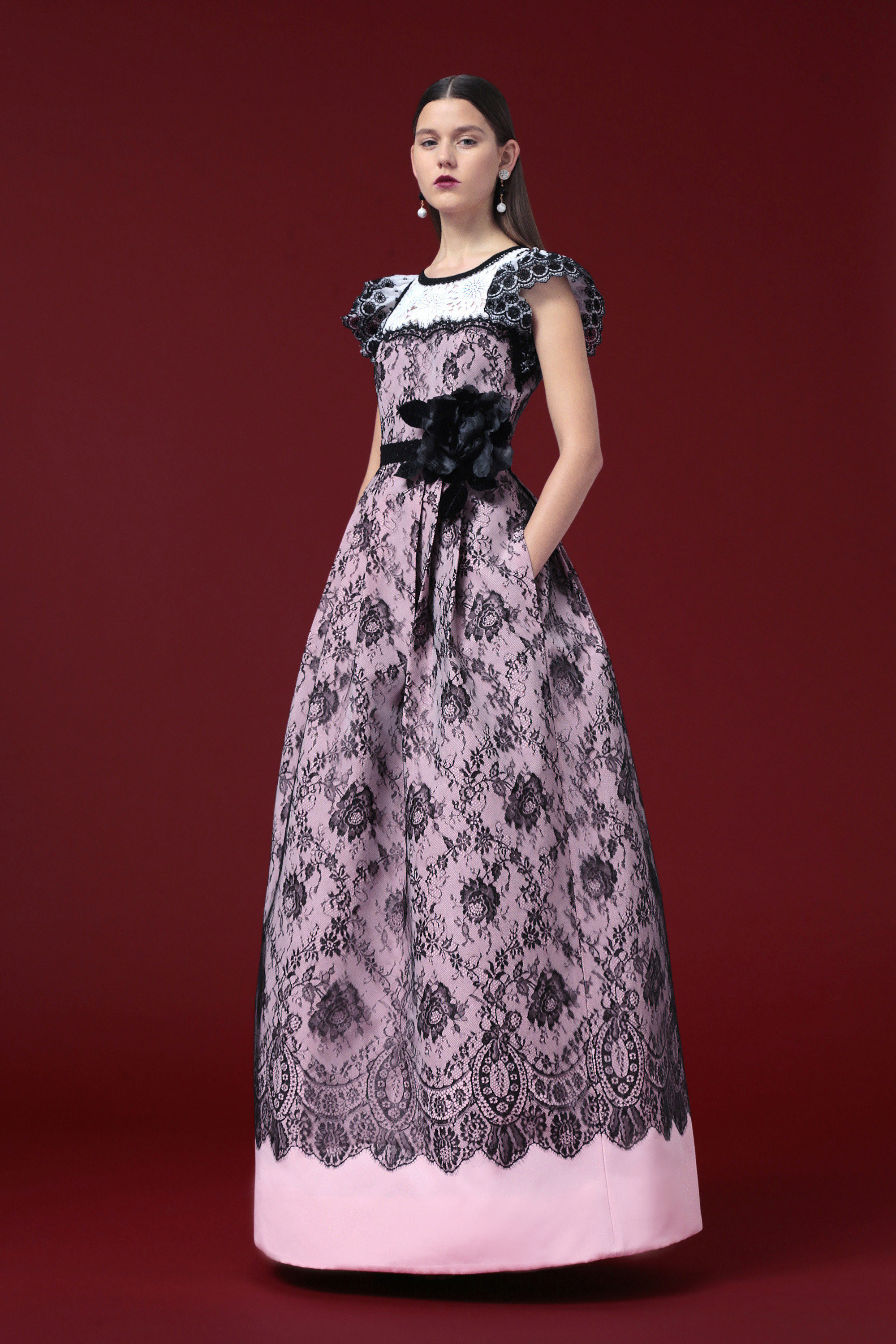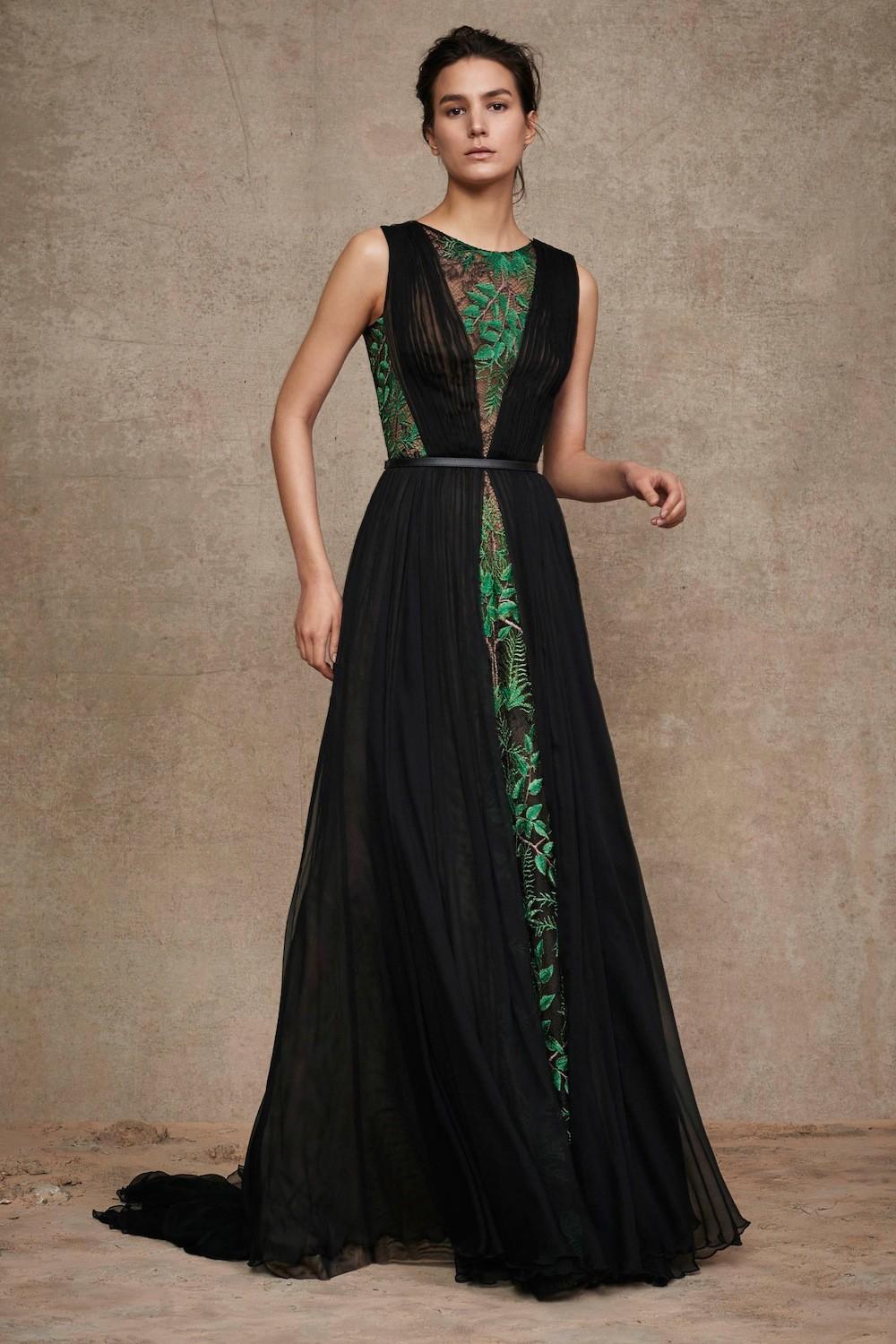 The rich texture of velvet and the ease of chiffon create an interesting, complex combination. These dresses need to match, then you get the image of a lady.