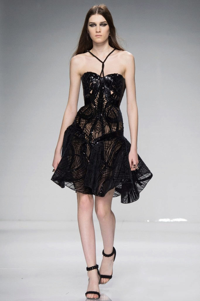 The length of the mini in combination with translucent guipure fabric is the surest way to create a provocative, sexy and most seductive outfit. In such a frank dress must be present opaque lining fabric.