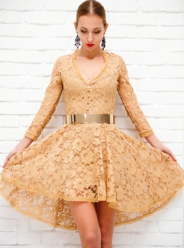 Such color solution for guipure dress is very well suited for summer dresses. Beneficially emphasizes tan and velvety skin.