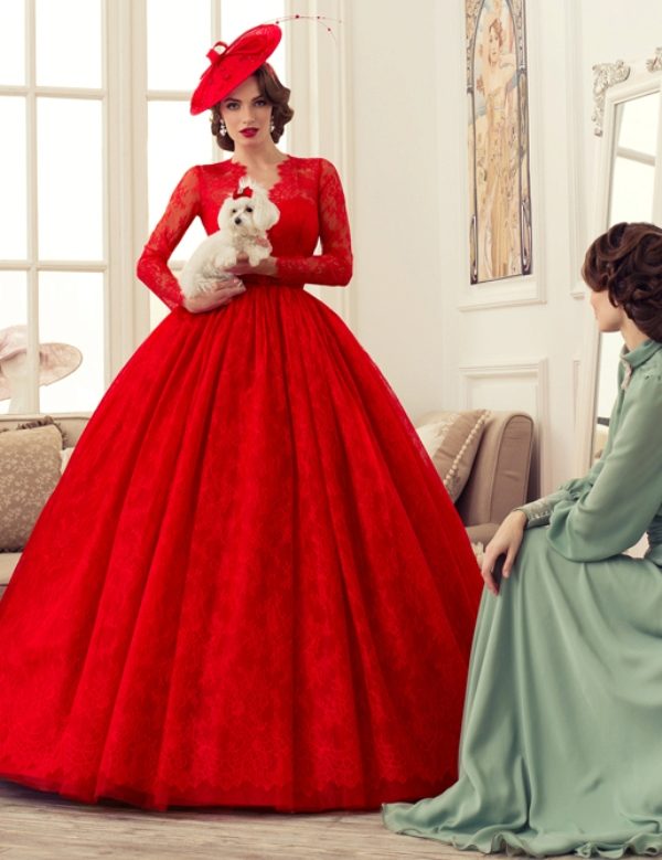 But gowns for gala evenings and fall options often have lace, long, freely falling sleeves. Short versions and sleeves of medium length also look quite attractive if selected according to the season and occasion.